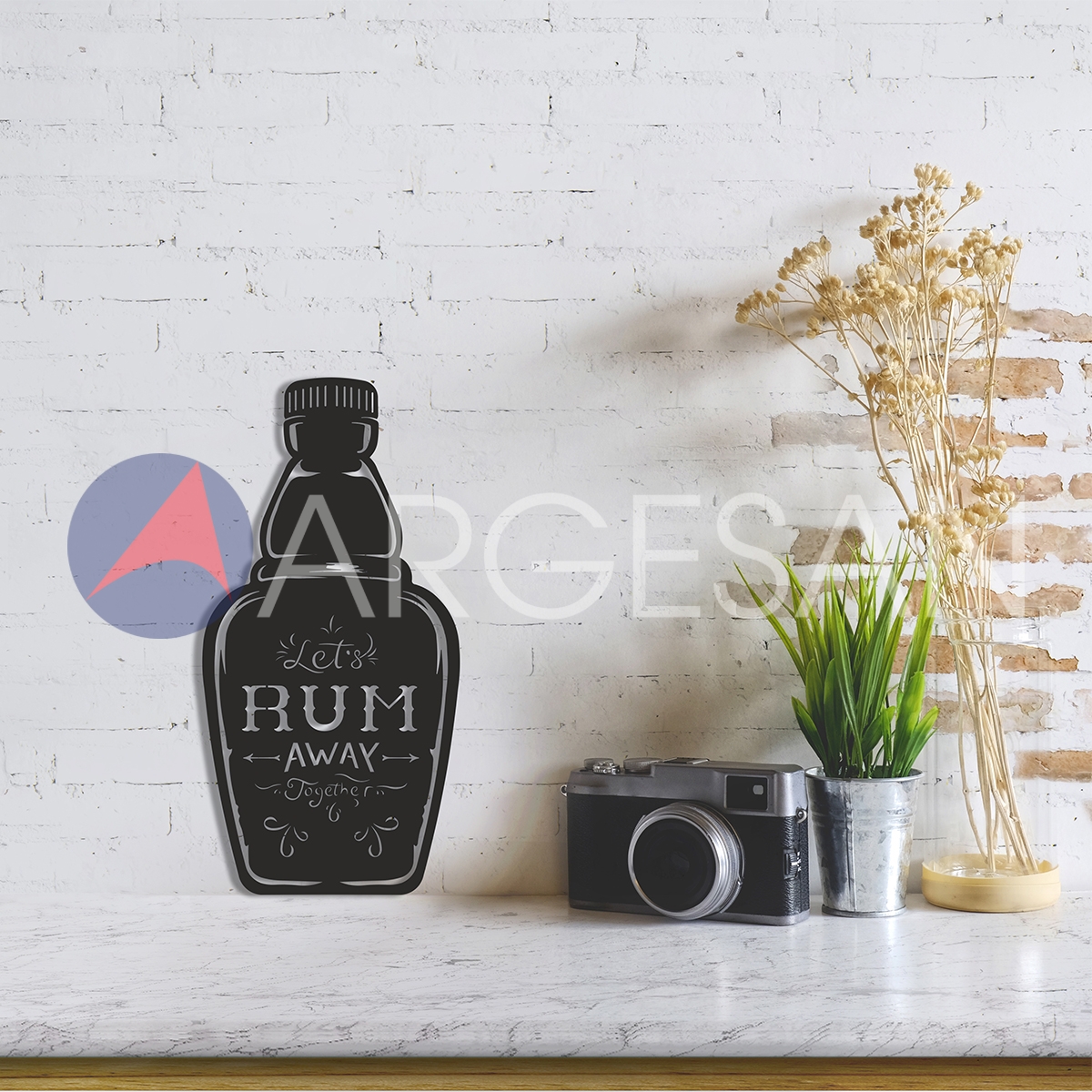 This artwork is a playful and lighthearted representation of the joy of togetherness. Shaped like a rum bottle with the humorous message "Let's RUM away together" inscribed on it, it encapsulates the spirit of adventure and fun. Crafted with creativity and wit, it brings a sense of celebration to any space it adorns. Owning this piece means possessing not just a work of art but a reminder to cherish moments of laughter, spontaneity, and shared experiences. It's not just decor; it's an invitation to savor life's pleasures.